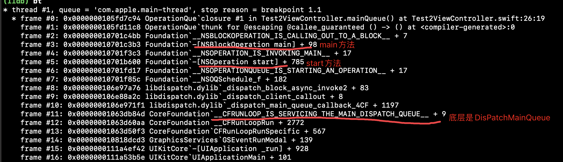 NSOperation的额外操作和整个队列的执行流程关系就不大了,额外操作是在main方法中执行的。