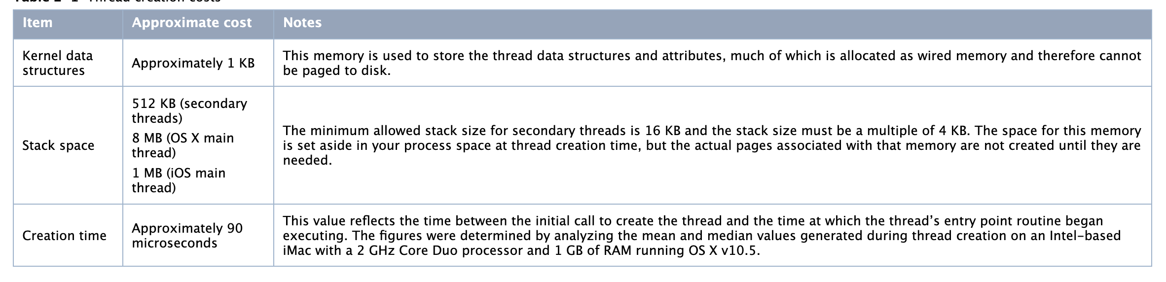 IOS线程的成本