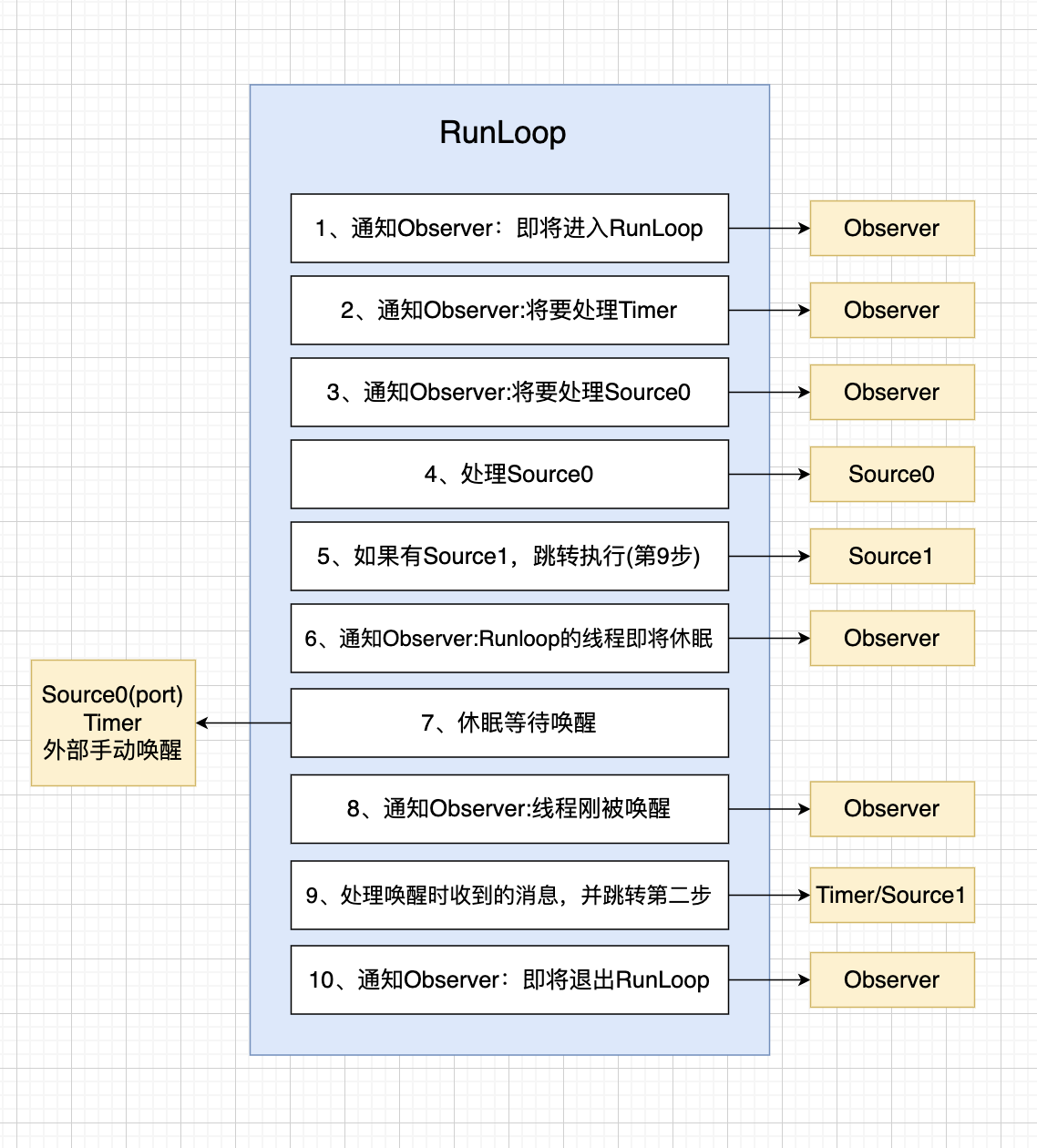 Runloop简单的来说就是运行循环,内部是一个do-while循环。它保证了程序的持续运行。是一种保障线程循环处理事件而不会退出的机制。