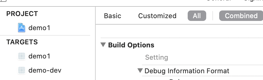 在demo1的工程下,我多建立一个target叫做demo-dev