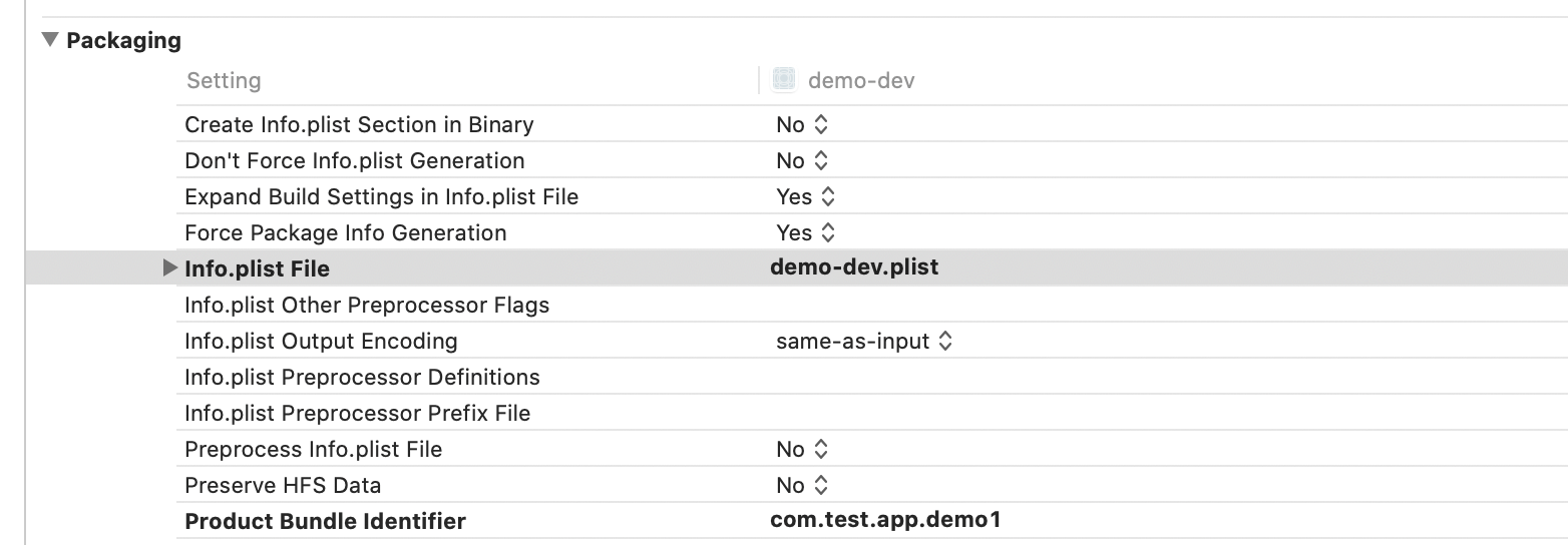 然后会生成一个新的info.plist,我将名字改成demo-dev.plist
