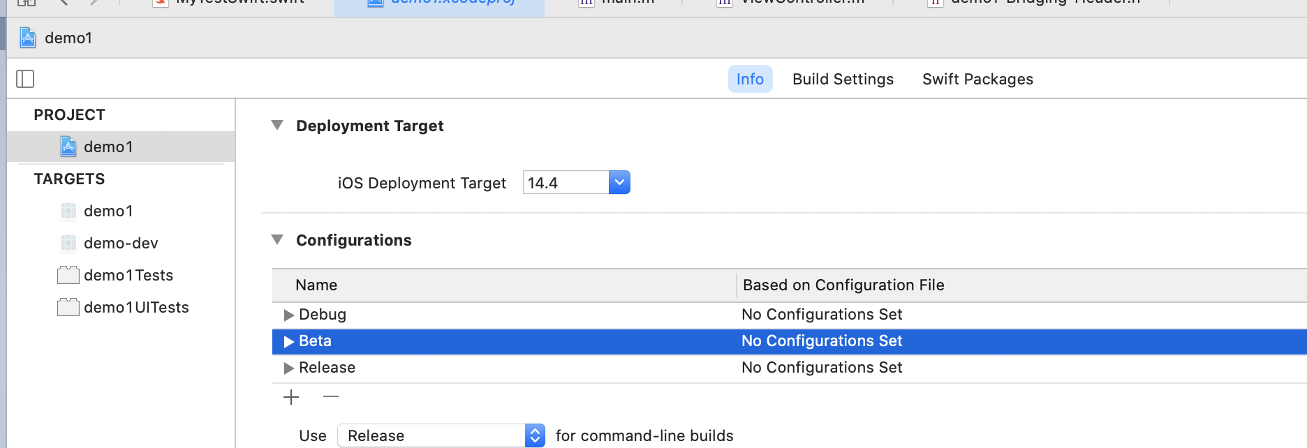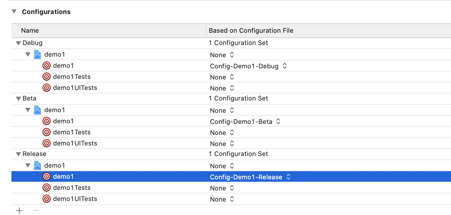1、首先在PROJECT -> info -> Configurations 添加一个配置,这里添加一个Beta