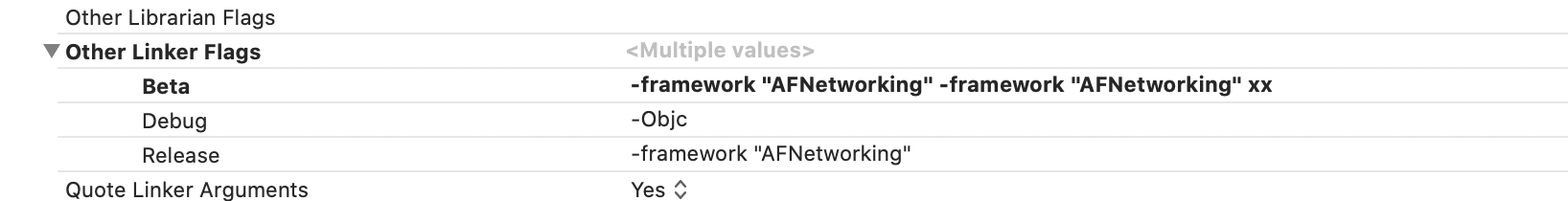 OTHER_LDFLAGS = $(inherited) -framework "AFNetworking"