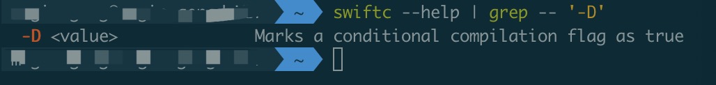那么-D是什么意思呢:通过 swiftc --help | grep -- '-D' 可以看到意思是: 将条件编译标志标记为true,所以需要加上-D这个参数。