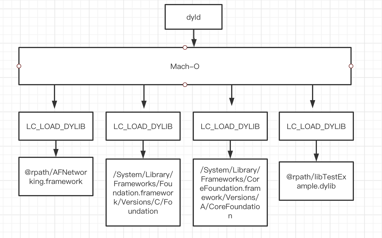 dyld在加载Mach-O的时候,会去加载LC_LOAD_DYLIB,LC_LOAD_DYLIB这里面保存了动态库的路径,dyld会通过路径去找到对应的动态库。