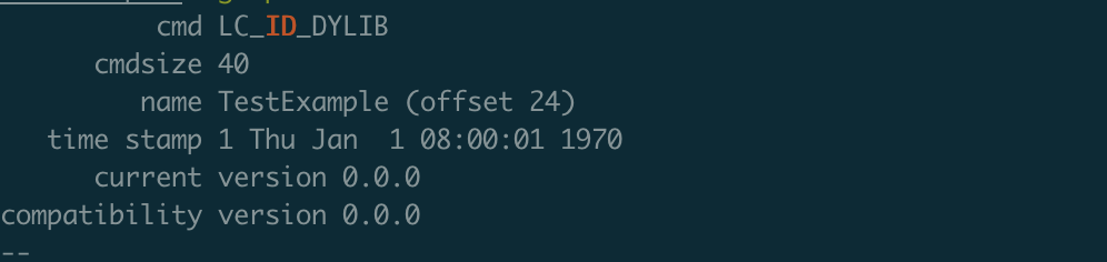 通过命令: otool -l TestExample | grep 'ID' -A 5
