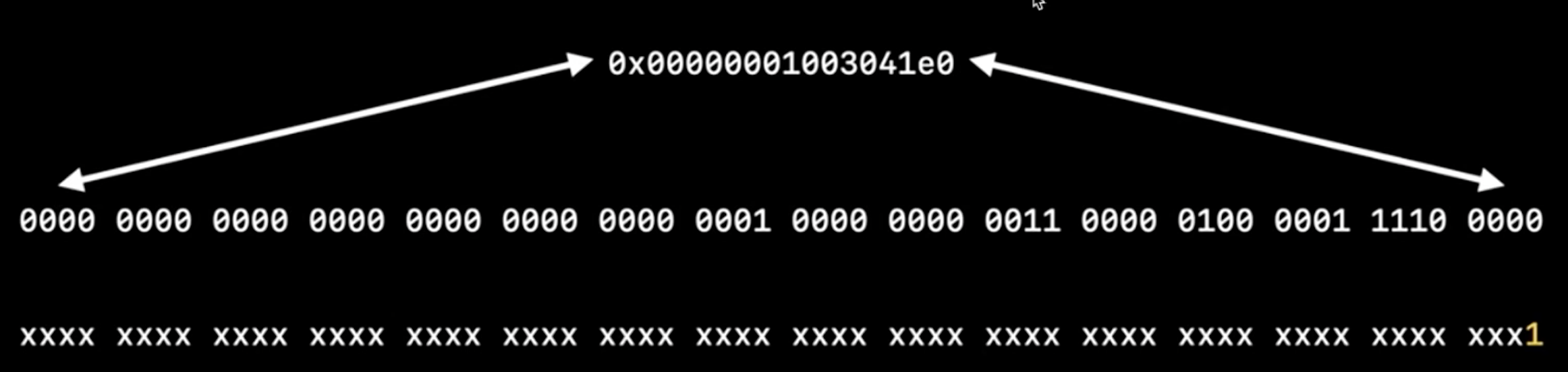 - tagged pointer = 值 + 标记,不需要存放在堆中