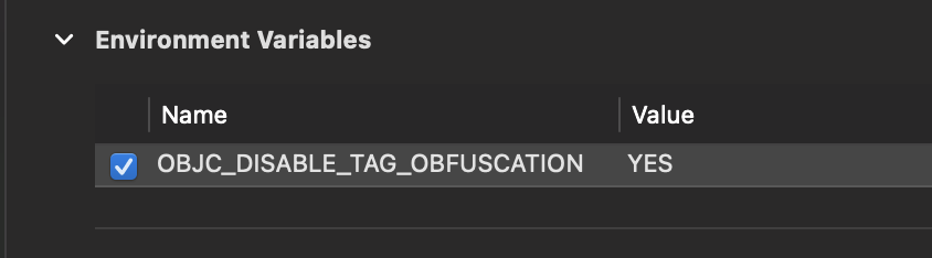 OPTION( DisableTaggedPointerObfuscation, OBJC_DISABLE_TAG_OBFUSCATION, "disable obfuscation of tagged pointers")