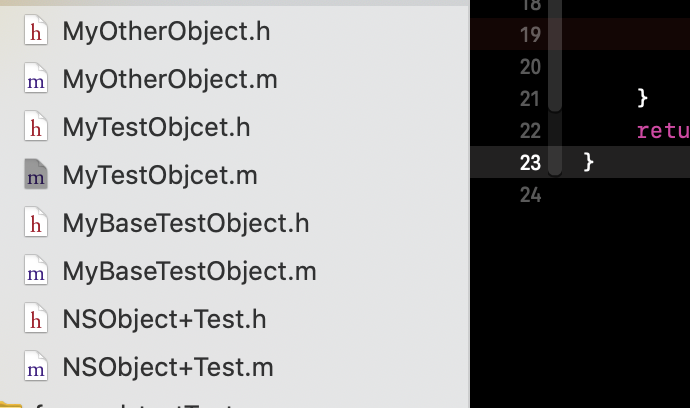 其中MyTestObject 继承MyBaseTestObject。MyOtherObject只继承NSObject。还有一个NSObject的分类。