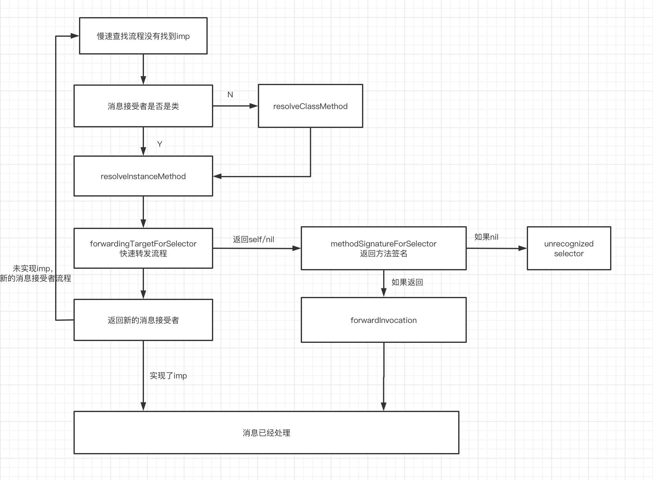 经过对消息慢速查找流程分析之后,我们知道如果还是没有找到方法,最终是会走objc_defaultForwardHandler抛出异常。那么在慢速查找失败到抛出异常的中间,还会有一层动态方法解析和消息转发机制给开发者提供补救的机会。接下来就重点分析一下动态方法解析和消息转发机制的整体流程。