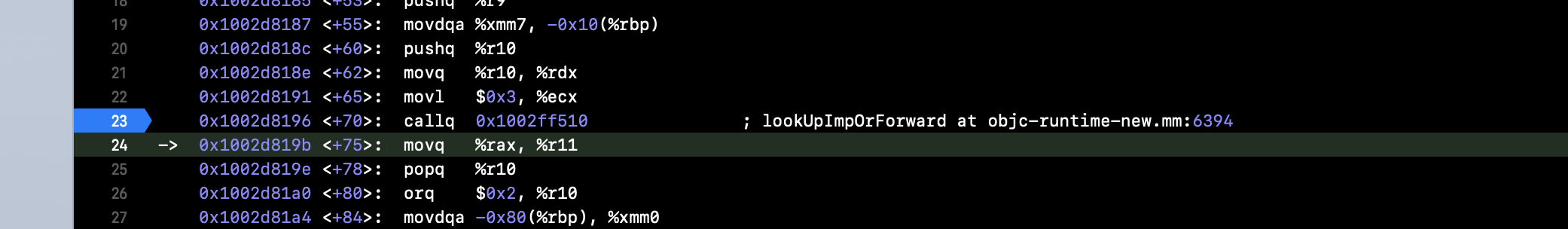 跳转 _lookUpImpOrForward,但是在objc-msg-arm64.s中并没有搜索到 _lookUpImpOrForward的实现。