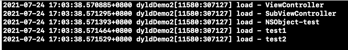 我在截图的文件中,都加入了+(void)load方法,看打印结果: