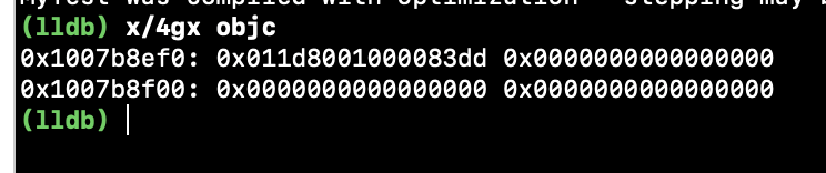 接着我们拿到0x00000001000083d8这个类地址继续x/4gx打印。