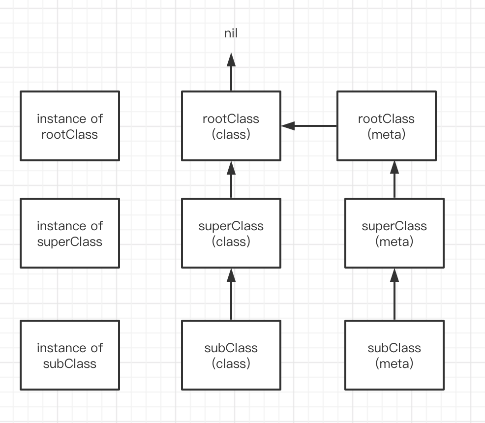 对于supterclass,就不按照isa的走势那样进行lldb打印调试了。这里直接附上supterclass的走势图: