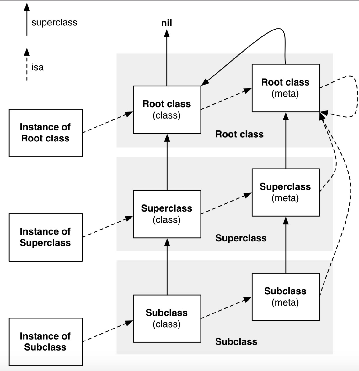 (2)元类也是有继承链的,但是最终的根元类是继承与NSObject。