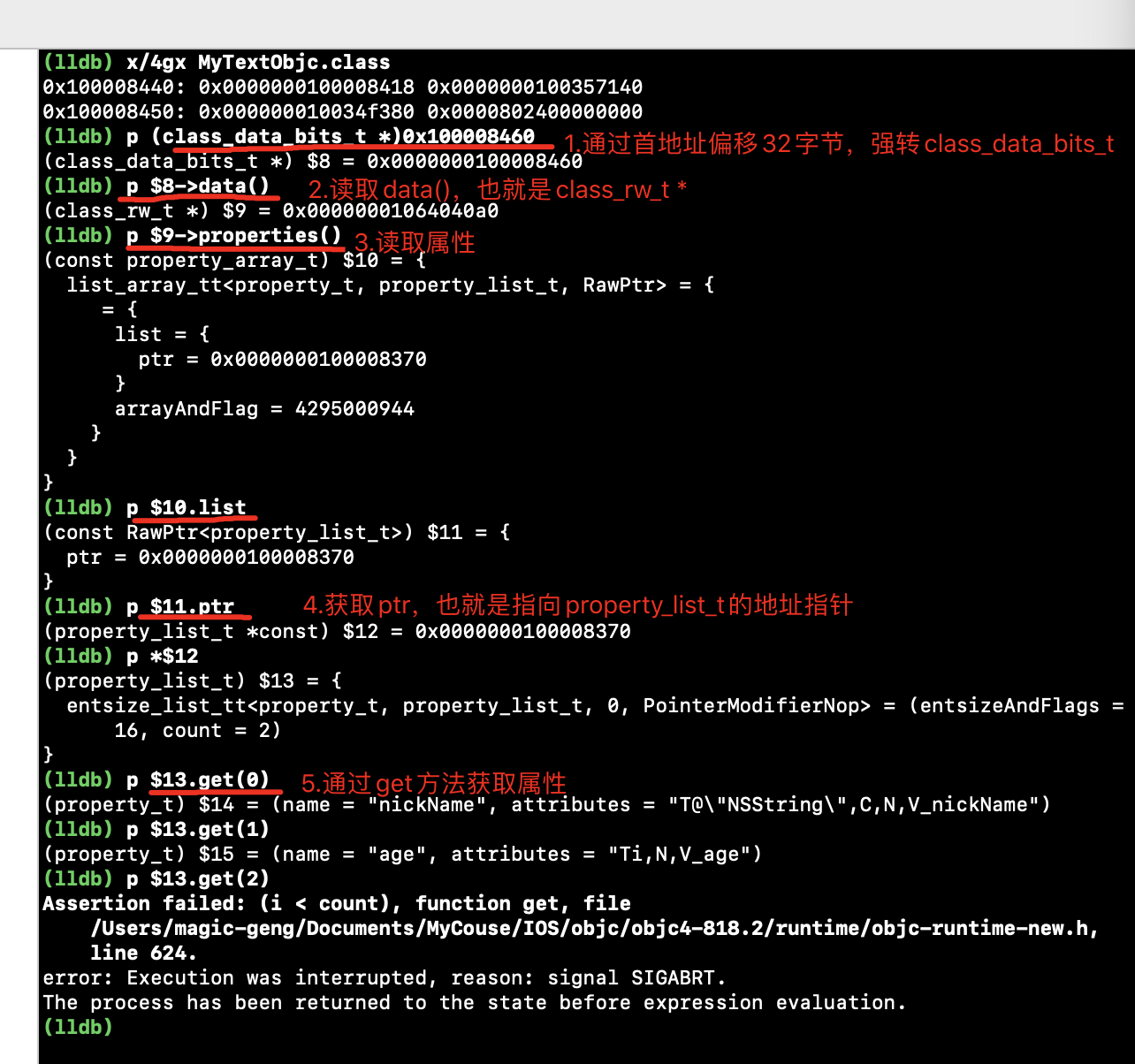 根据以上代码可以获取到属性列表,我们打印一下MyTextObjc中的属性
