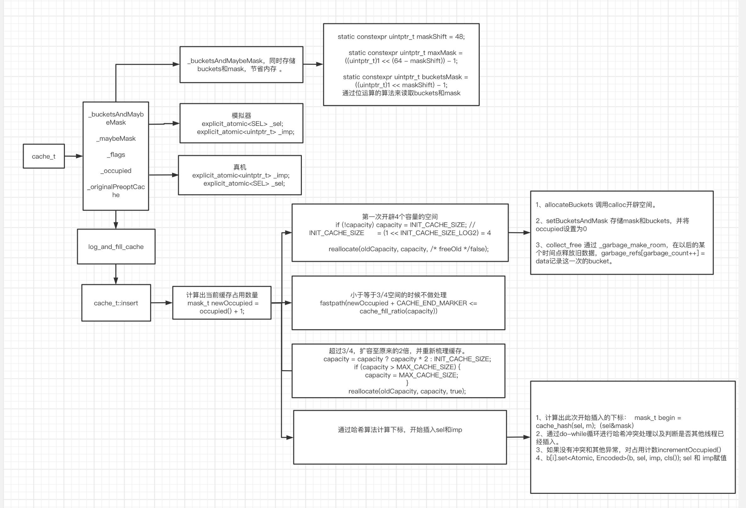 在cache_t中有一个insert方法,就是要插入sel 和 imp的地方。